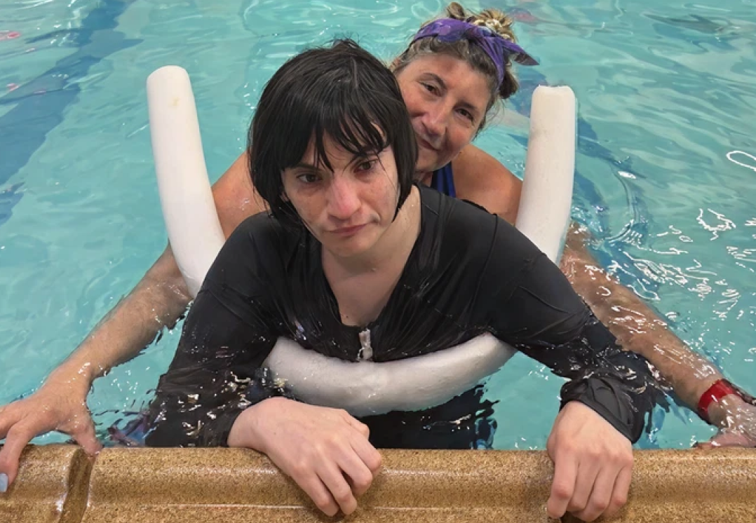 Michelle, age 31, loves the water. Recently, she attended a local Splash & Social hosted by the New Jersey Rett Syndrome Association. She met other individuals with Rett and spent time relaxing in the pool.
